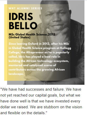 You are going to have unqualified access to some of the top people in the venture capital space. I envy you already. I work with over 150 of the smartest investors in Africa, and engage with over 100 portfolio companies across diverse sectors!