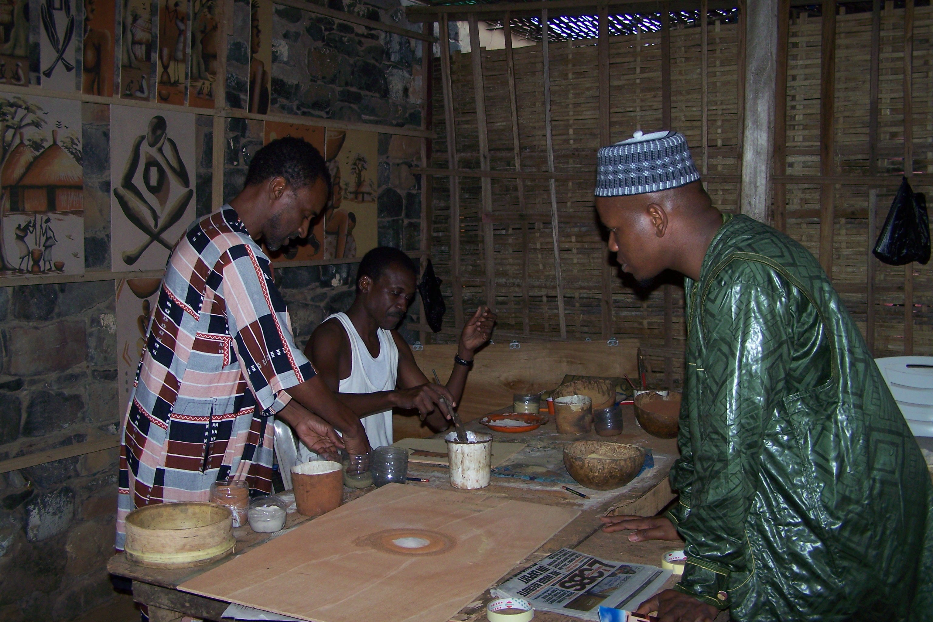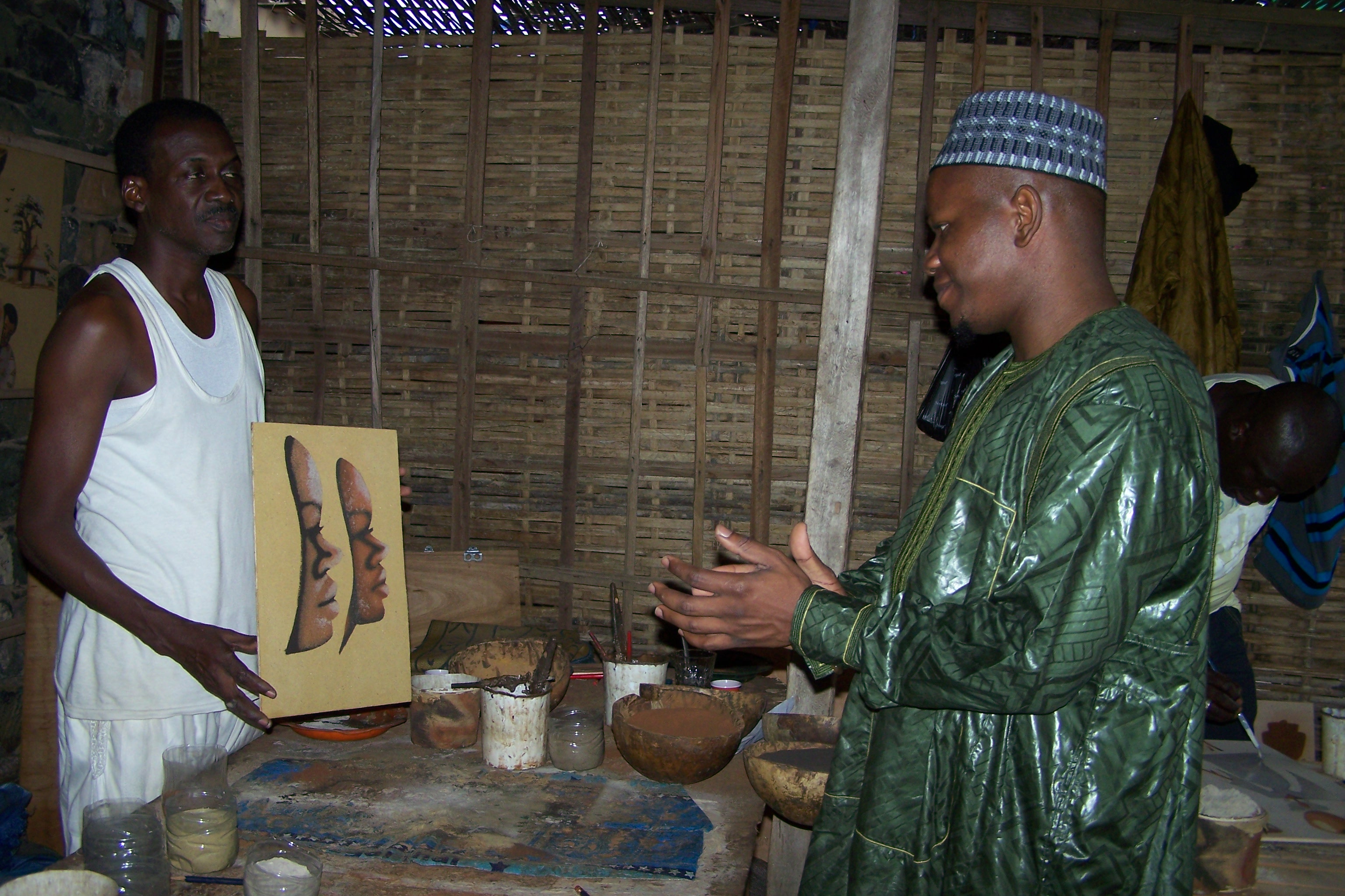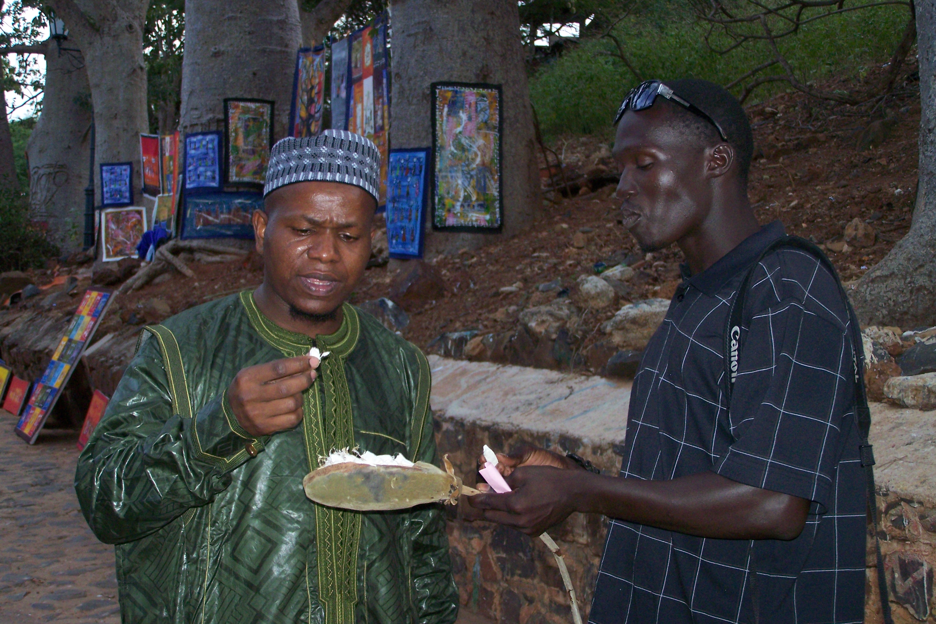 Walking around the island, I was able to observe some artists at working using only natural materials for their paintings. They would start with sands of various colors from several parts of the continent, and then use the Arabica gum and the baobab sap to complete the amazing paintings.